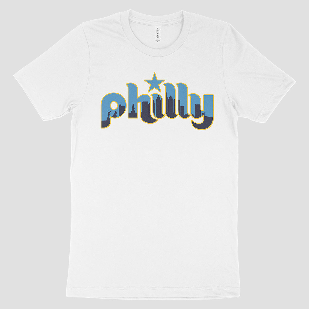 Philly pride, city edition style. Clean, bold, and unmistakably Philadelphia. Printed on Bella+Canvas 3001.